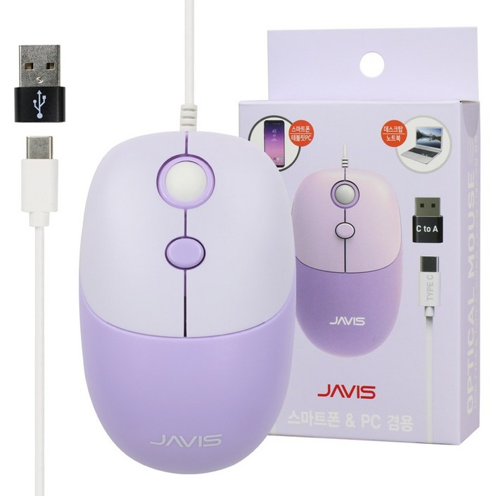JAVIS 초경량 C타입 유선 노트북 컴퓨터 핸드폰 마우스 USB A 젠더 세트 JVM5
