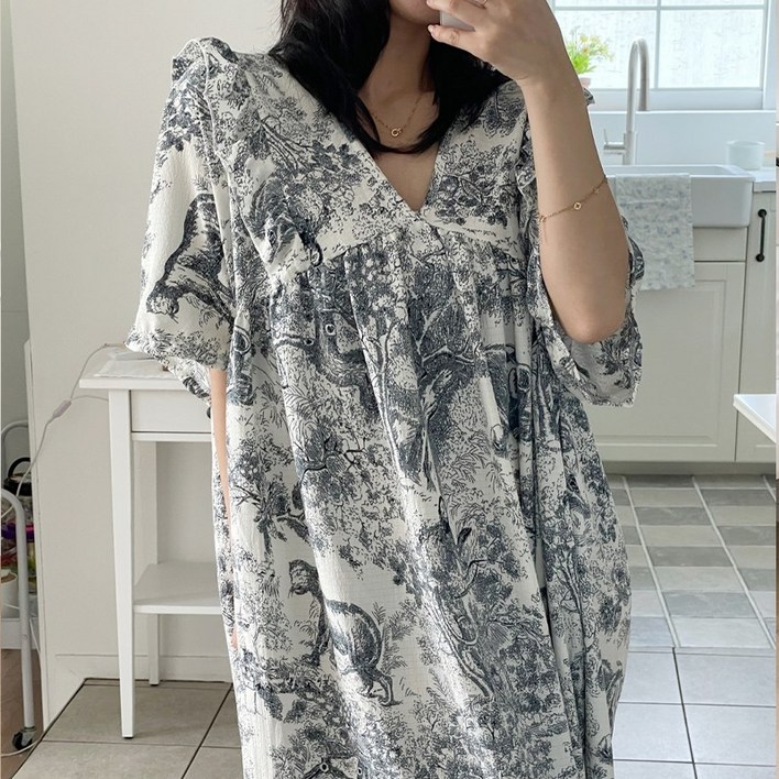 미야미 반팔 44 120 빅사이즈 뜨왈 빅사이즈 감성 오버핏 파자마 홈웨어 원피스 임부복