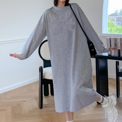 아이엠몽 여성용 루즈핏 라운드넥 긴팔 맨투맨 롱 원피스 R6S077
