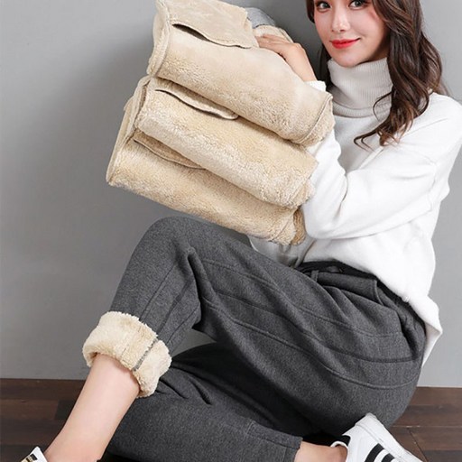 ANYOU 여성 겨울 패션 기모 조거팬츠 캐주얼 털 두꺼운 방한바지