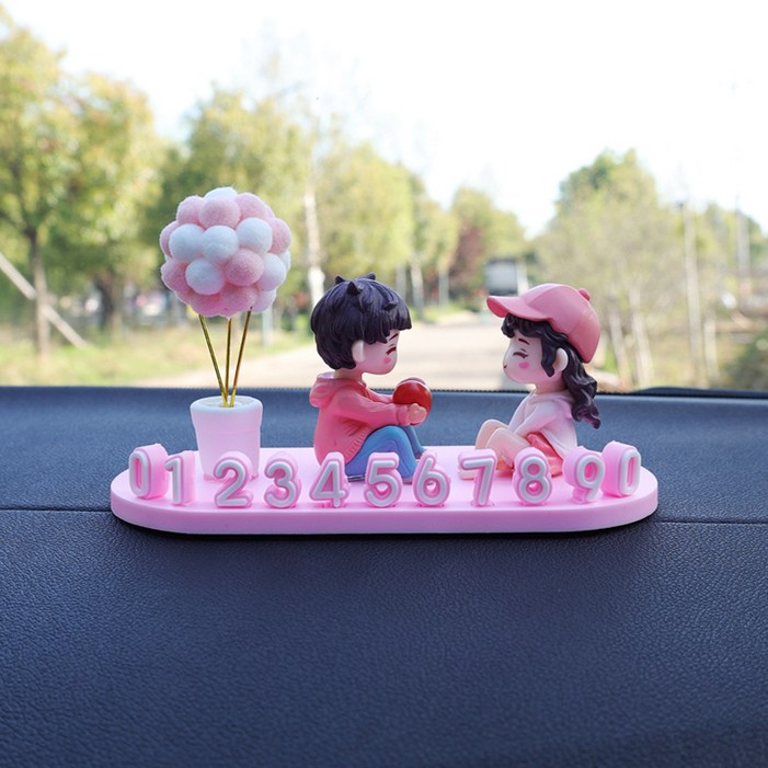 넘버링카 자동차 전화번호판 주차번호판 팬더 커플 주차알림판 주차안내판, 1개, 분홍
