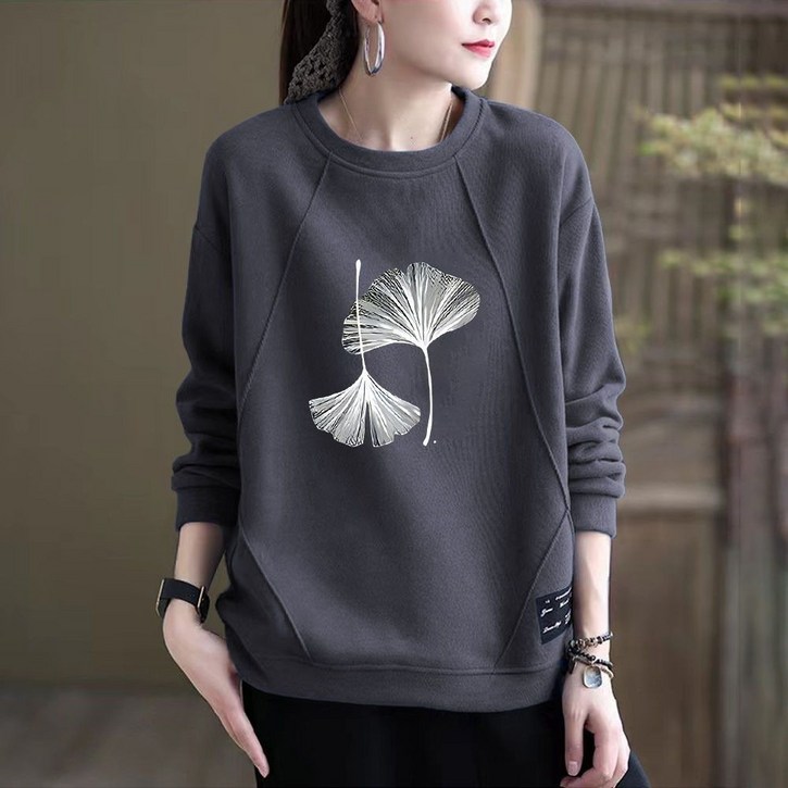 Makone 여성 순면 맨투맨 프린트 라운드넥 루즈핏 빅사이즈 캐주얼 긴팔 티셔츠